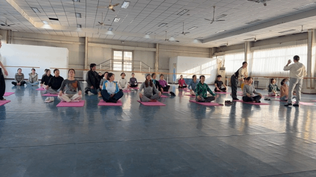 工作坊紧扣“不止是舞蹈”的主题,聚焦教师群体,通过专业指导助力教学仪态提升,为来自各个学院和部门的老师们带来了沉浸式身体美学体验。刘老师从基础发力点切入,细致讲解了脊柱直立、肩颈舒展、手臂线条延伸的规范发力,并通过手把手的示范与动作纠正,引导教师们对后背的肌肉群进行科学训练。结合芭蕾基础训练对腓肠肌、腘绳肌、股四头肌进行了针对性练习,使下肢更具有柔韧性。活动不仅着眼于体态塑形与身心康养的结合,更有力助力教师夯实基于良好体态的专业教态基础,深入理解身体美学的核心内涵。参与教师们热情高涨,全程积极跟练,在实践中探索美育融入课堂教学的新路径。(图3、图4、图5、图6)