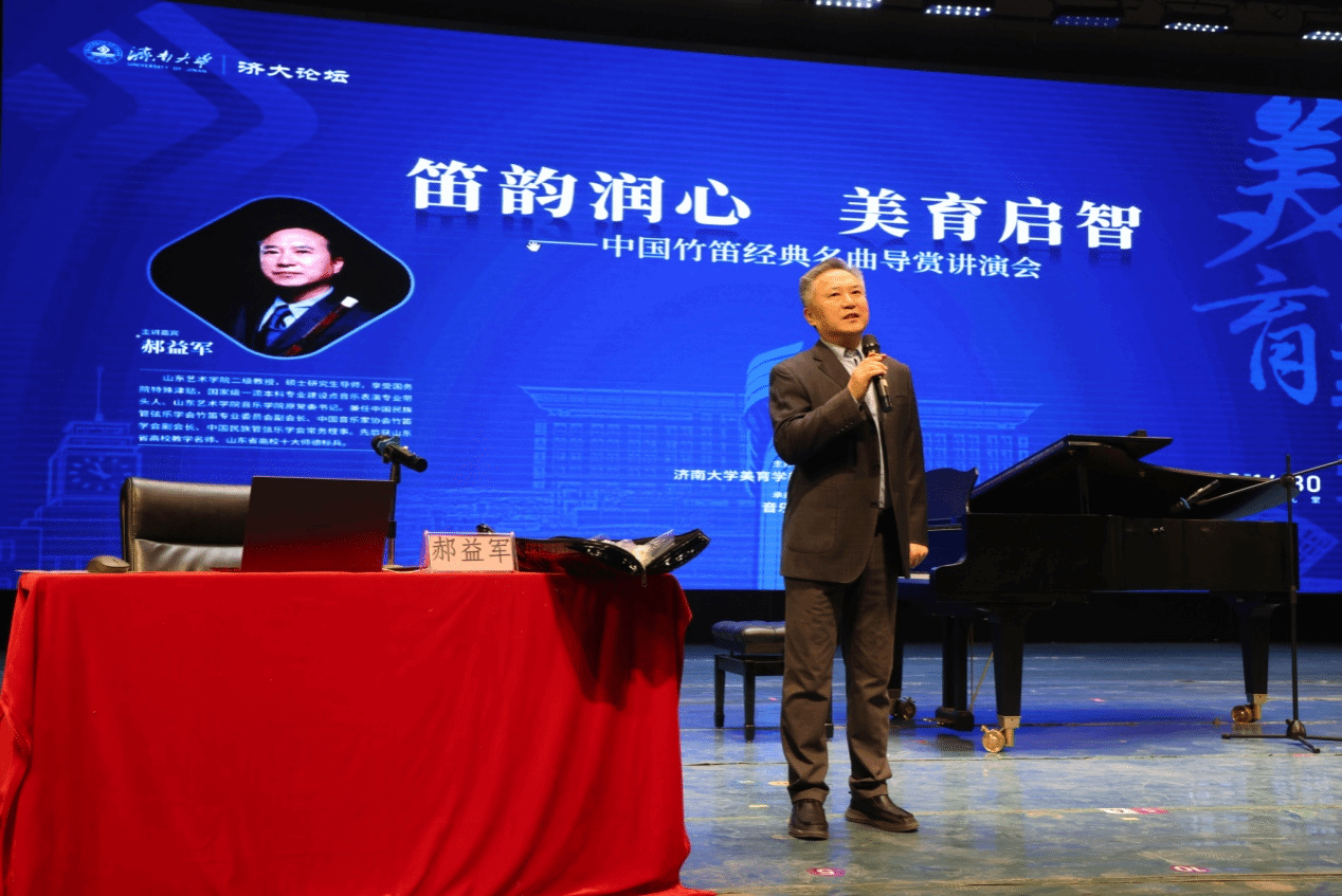 承办的“济大论坛·美育大讲堂”《笛韵润心 美育启智——中国竹笛名曲导赏》在学校大礼堂举行。山东艺术学院二级教授、硕士研究生导师郝益军教授应邀担任主讲,500余名师生齐聚一堂,一同走进竹笛艺术的审美意蕴与文化根脉,在聆听与体验中感受中华优秀传统文化的恒久魅力。