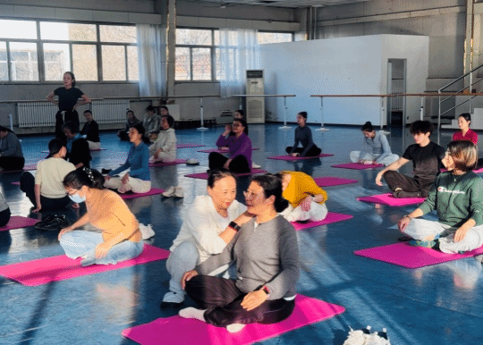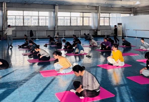 工作坊紧扣“不止是舞蹈”的主题,聚焦教师群体,通过专业指导助力教学仪态提升,为来自各个学院和部门的老师们带来了沉浸式身体美学体验。刘老师从基础发力点切入,细致讲解了脊柱直立、肩颈舒展、手臂线条延伸的规范发力,并通过手把手的示范与动作纠正,引导教师们对后背的肌肉群进行科学训练。结合芭蕾基础训练对腓肠肌、腘绳肌、股四头肌进行了针对性练习,使下肢更具有柔韧性。活动不仅着眼于体态塑形与身心康养的结合,更有力助力教师夯实基于良好体态的专业教态基础,深入理解身体美学的核心内涵。参与教师们热情高涨,全程积极跟练,在实践中探索美育融入课堂教学的新路径。(图3、图4、图5、图6)