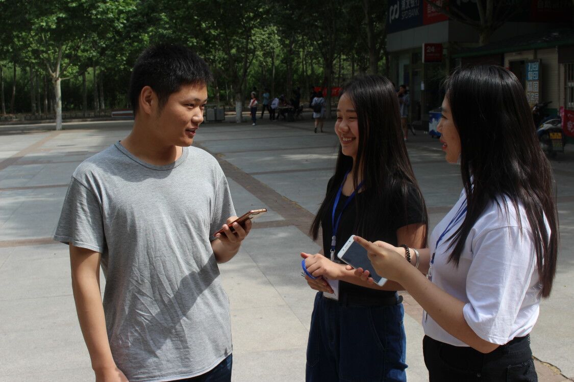 的三名志愿者走进校园,询问学校同学是否知道今天是母亲节,了解同学们对母亲节这个节日的看法,并且提醒同学们给自己的母亲打一个电话。在采访过程中,学校的同学们都认真回答我们的问题,并且给自己的母亲打一个电话。此情此景让我们很是感动。