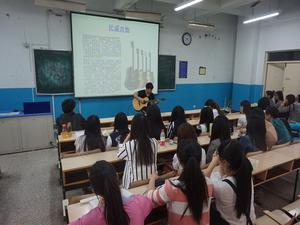 志愿者走进东校区酒店管理学院旅游系的课堂,开展理论讲述与现场欣赏同步的音乐讲堂,此次志愿讲堂主要以器乐为主,秉承着“音和乐谐,德艺双馨”的理念,普及吉他和萨克斯等乐器的知识,提升普通专业学生对音乐艺术更深层次的了解。