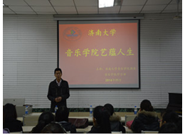活动开始,团委书记高学德对本次活动发表了讲话,阐述了艺蕴人生活动的主要意义,希望同学们能更好的了解各种艺术专业对生活与学习的影响,为大家提供一个良好的学习平台。本场活动是“艺蕴人生”系列活动第一场——钢琴专场,由钢琴表演专业的高亚楠同学为大家进行讲解,首先高亚楠为大家讲述了自己学习钢琴的经历,她说,以前在学习钢琴的过程中遇到了许许多多的困难和挫折,但由于自己的努力与执着,终于有了不错的成绩。她为我们讲述了贝多芬学习的经历,贝多芬早年连遭命运的重创而双耳失聪,这对于一个痴迷于音乐的人来说是一件多么打击的事,但凭借着他对音乐梦想的执著和永不放弃的信念,终于第三交响曲在他的指尖下跳荡,那恢弘的旋律多么令人惊叹!当高亚楠讲到这里时,台下掌声一片,同学们纷纷对贝多芬的事迹所感动。接着,按照音乐历史的发展,她又讲述了莫扎特以及李斯特学习钢琴的一些经历,以及他们演奏钢琴的一些知识。活动最后,高亚楠给我们放了一段著名钢琴家朗朗演奏的视频,他在演奏时的表情和动作是那么的到位,完全融入到了演奏中,在场的每一位同学都沉迷在他的表演中。