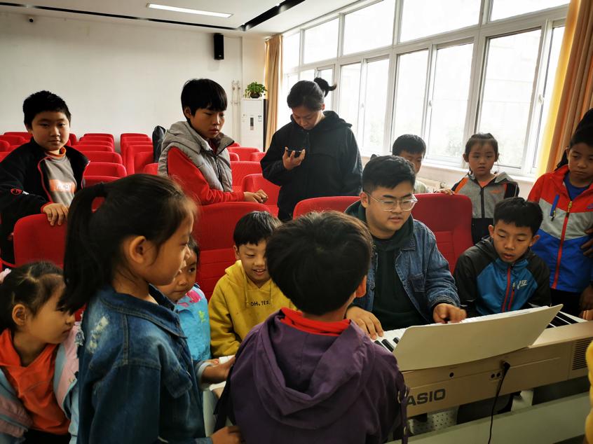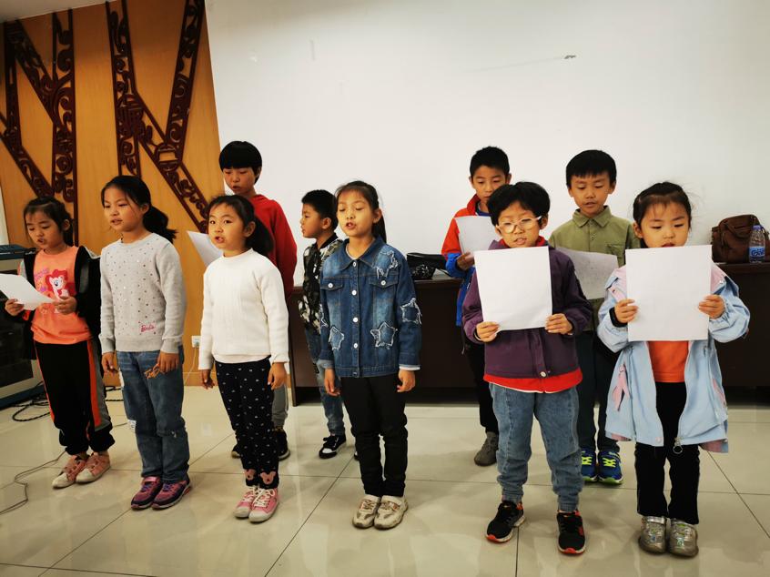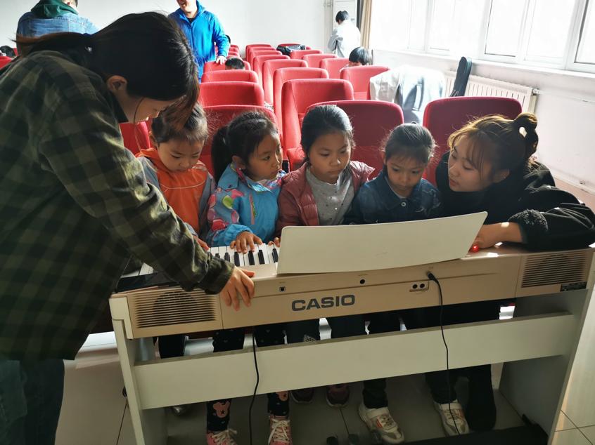 最后,老师们带着孩子们一起学唱了《让我们荡起双桨》这首歌,一首简单却美好的的歌曲在孩子们童声的齐唱中,伴着老师的钢琴声回荡在教室中。仿佛整个世界都是那样的美好,在七彩的童声中变成了最干净的一方净土。