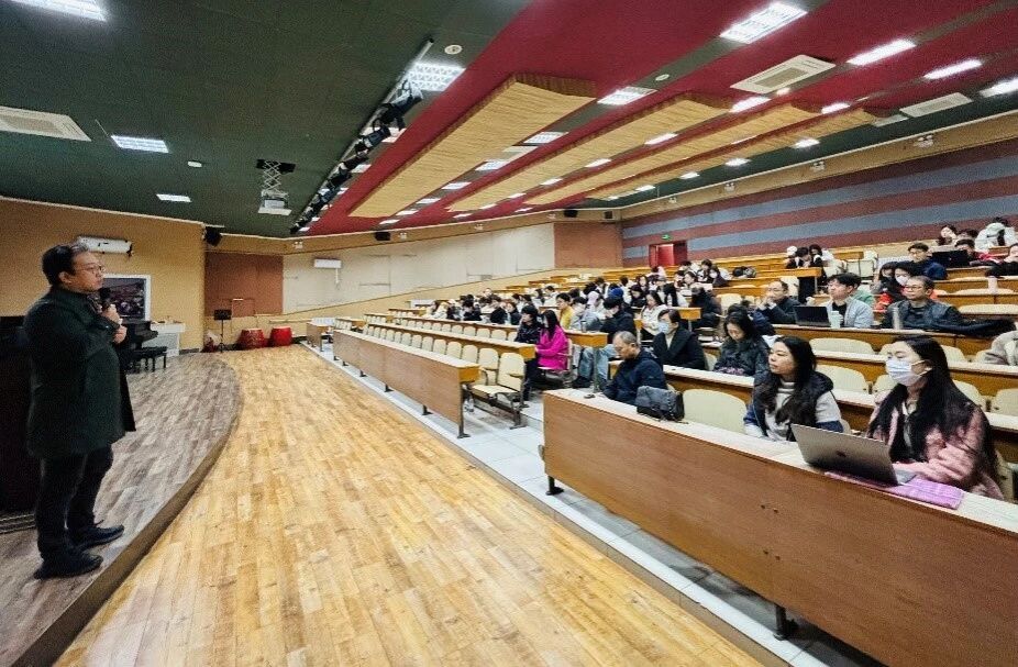 作曲系教授李鹏云担任主讲人,齐丽花副院长主持,全院师生约120人参加活动。